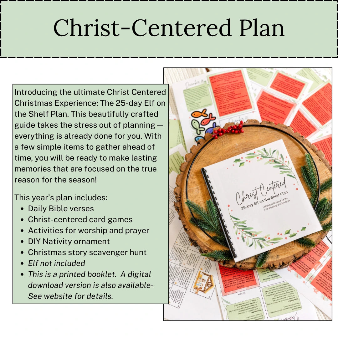 Introducing the ultimate Christ Centered Christmas Experience: The printed version of the 25-day Elf on the Shelf Plan. Take the stress out of holiday planning with this ready-to-use printed booklet. With just a few simple items to gather, you’ll enjoy meaningful, faith-filled moments all season long. Each day features Bible verses, Christ-centered games, worship activities, prayer prompts, a Nativity ornament craft, a Christmas story scavenger hunt, and more—perfect for families who want to celebrate faith and fun together. Elf not included. This is the printed version. A digital download is also available on the website.
